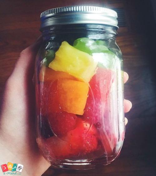 میان‌وعده‌ی لیوانی از میوه‌های رنگارنگ